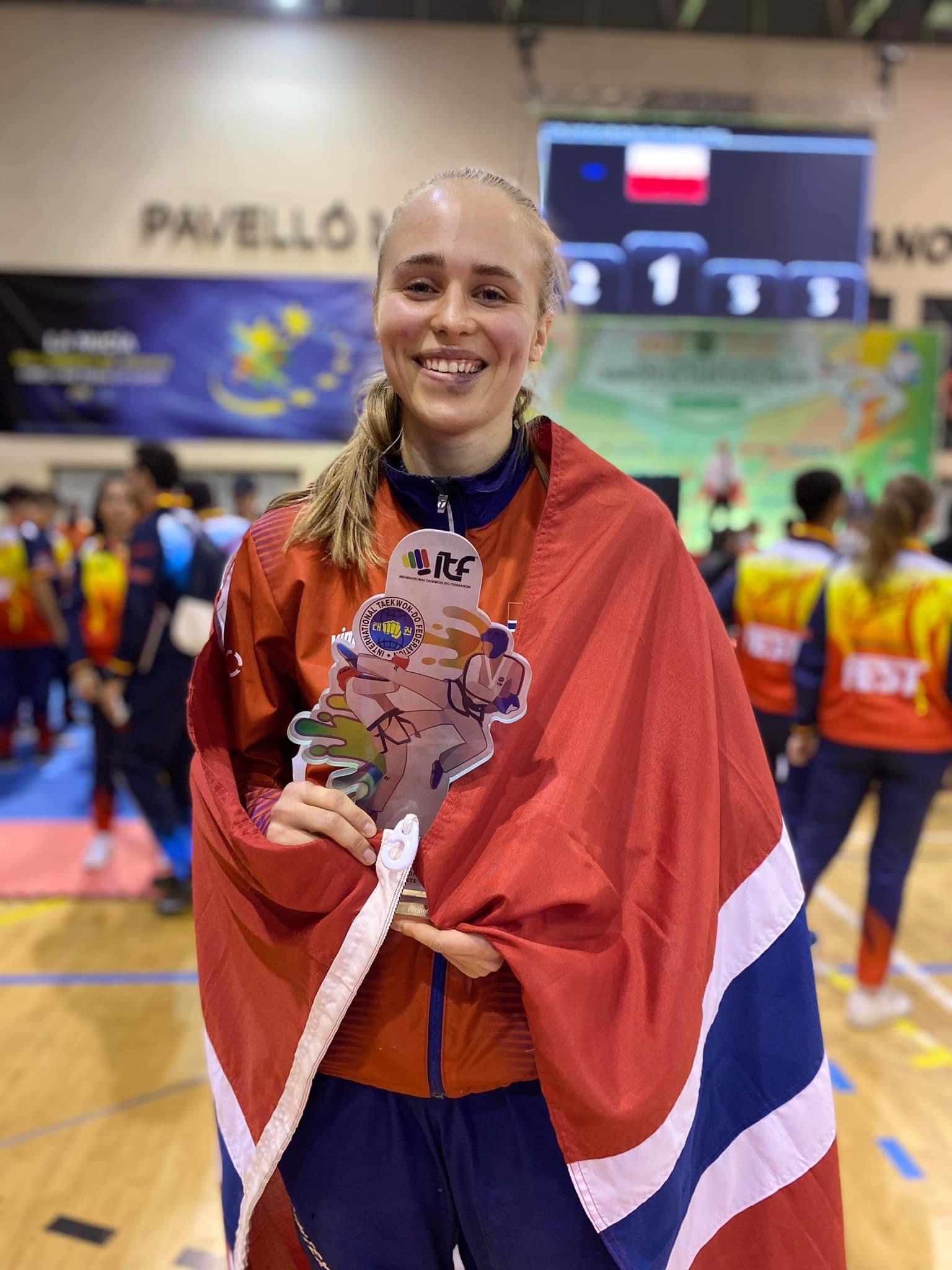 Ann Linnea Hole fra Bergen ble kåret til mesterskapets beste senior dame, med gull i både mønster og sparring. En stor prestasjon, som vi er veldig imponerte over!