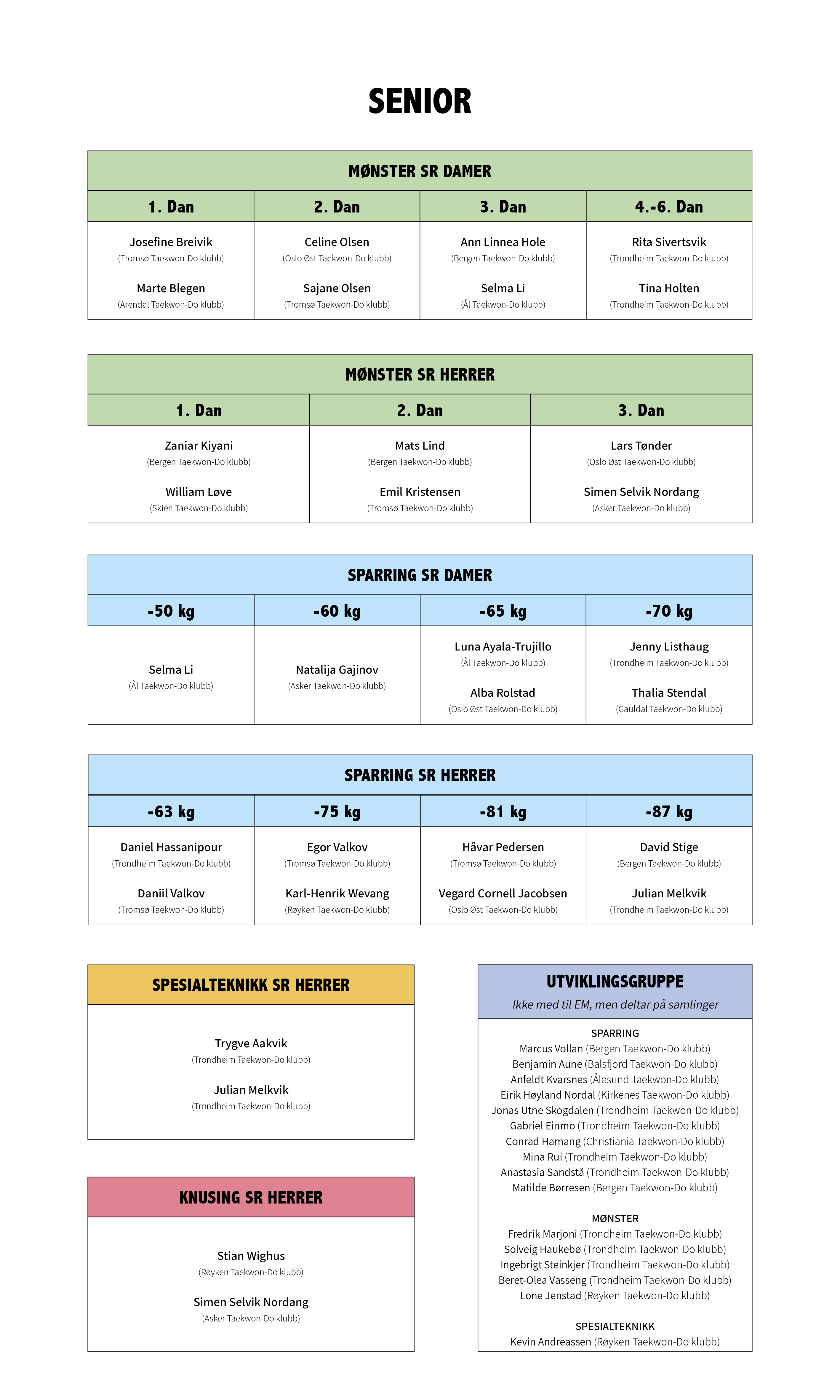 Medlemsinfo Filer Gradering Sortbeltesøknad Praksisrapport Landslag Lover og regler NTNs instruktørkurs Terminliste Undervisningsmateriell Landslag LANDSLAGET 2026